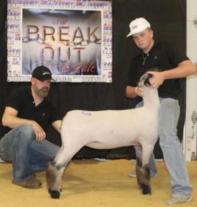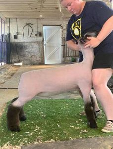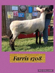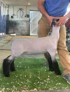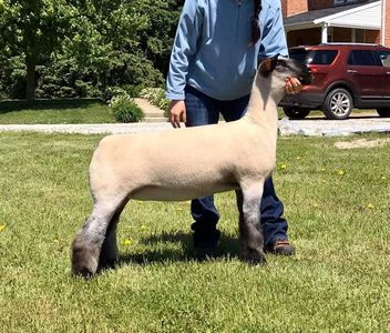 Gabbie came to us via Johnson Family Show Stock. She is by Gustavo and out of JFSS 7175, a full sibling to SAFfire, Champion Hamp Ewe at All American, Louisville, and the Ohio State Fair Grand. Gabbie is from the same flush as the $4750 Cinco de Mayo buck and Dynamite Diva. Here is a video of her selling at the Breakout Show/Sale.